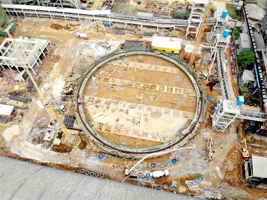 “開始澆筑!”3月15日下午2點40分,隨著魚峰水泥技改項目總負(fù)責(zé)人的一聲令下,4臺混凝土泵車和混凝土攪拌車準(zhǔn)時就位,4臺天泵同時啟動澆筑。這標(biāo)志著項目熟料庫的筒體滑膜施工正式啟動,并以每小時10厘米的速度向上滑升。項目部開足馬力、鉚足干勁,迅速掀起“奮戰(zhàn)一季度”新一輪項目建設(shè)高潮。