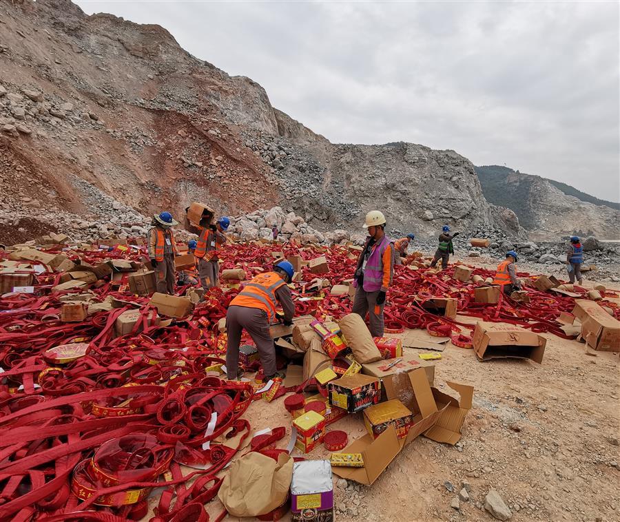 12月9日,第七分公司爆破工程公司受柳州市公安局治安警察支隊委托,對一批非法銷售、儲存的煙花爆竹進行集中銷毀。