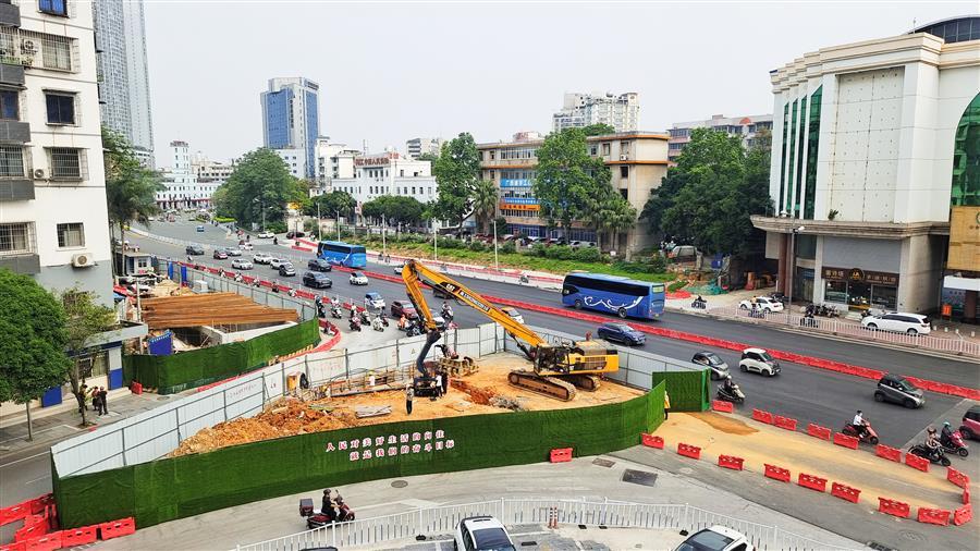項目于從2021年1月4日開工建設,分5個階段施工。2月1日完成了首期的施工計劃——將友誼路從雙向6車道拓寬為雙向8車道,解決文昌大橋下橋道路變窄的瓶頸問題,并為下穿主體施工做好了前期準備工作。