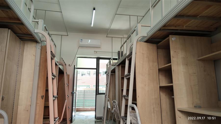 項(xiàng)目從開工到新生入住,基礎(chǔ)、主體結(jié)構(gòu)、裝飾裝修以及室外配套等工程的施工用時不到五個月。在時間緊任務(wù)重的情況下,項(xiàng)目部克服疫情反復(fù)、持續(xù)高溫等困難,優(yōu)化方案,多措并舉,緊盯目標(biāo)任務(wù),發(fā)揚(yáng)“5+2”“白加黑”連續(xù)作戰(zhàn)精神,全力以赴推進(jìn)項(xiàng)目建設(shè),在全體項(xiàng)目工作人員的努力下,項(xiàng)目圓滿完成了相關(guān)配套工程施工建設(shè),確保了2022級新生如期入住。