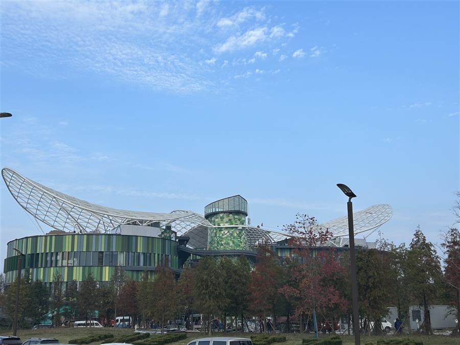 據(jù)悉,該項(xiàng)目位于江蘇省東臺(tái)市黃海森林公園內(nèi),由東區(qū)、西區(qū)及戶外休息區(qū)三部分組成,總建筑面積約1.8萬(wàn)平方米,建筑高度22.77米,最大單跨跨度為45米。