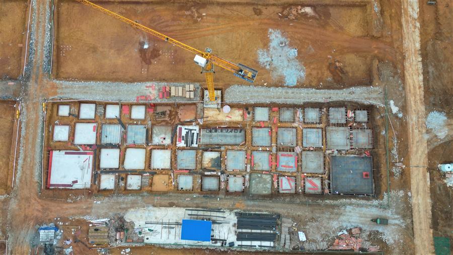目前,該項目設(shè)備房消防水池外架搭設(shè)、模板安裝已完成,4號廠房側(cè)面檁條安裝完成,5號廠房屋面檁條安裝完成50%,6號樓基礎(chǔ)承臺已完成,4號樓地基處理注漿完成70%等。