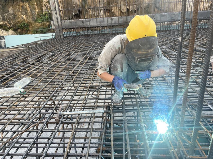 在項(xiàng)目現(xiàn)場(chǎng),工人們頂著烈日?qǐng)?jiān)守崗位。鋼筋綁扎工人一手固定住鋼筋,一手熟練地把鋼筋綁扎好;電焊工人“全副武裝”,一手舉著防護(hù)面罩,一手拿著焊槍嫻熟作業(yè);抹灰工人飛舞著抹灰刀,熟練地向墻面抹水泥砂漿;安裝工人操作電鉆將門(mén)窗穩(wěn)穩(wěn)地安裝到位……熱火朝天的大干現(xiàn)場(chǎng)依然井然有序。