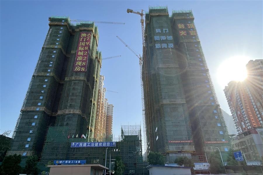河池·澳門國際城四期工程總建筑面積13.76萬平方米,由4#樓5#樓、地庫以及配套設(shè)施工程和1#樓2#樓3#樓工程兩大部分組成。該項目按照既定的節(jié)點全面鋪開施工,既抓嚴抓細抓好關(guān)鍵環(huán)節(jié)施工管理,又積極主動推進項目創(chuàng)優(yōu)工作,確保施工生產(chǎn)與項目創(chuàng)優(yōu)兩不誤。據(jù)了解,4#樓5#樓外架拆除均至15層;地下室分部工程水電消防安裝已接近收尾。1#樓磚砌體完成至22層,2#樓磚砌體完成至27層,3#樓磚砌體已完成、二次結(jié)構(gòu)施工至24層。2023年,本項目先后獲得河池市建筑施工安全文明工地、廣西建設(shè)工程安全文明標(biāo)準化工地等榮譽。