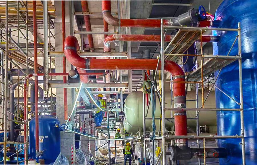 7月以來,項目部精心組織,細化項目施工任務(wù),抓住施工“黃金期”加快推進項目建設(shè)。項目全體人員頂著高溫酷暑,堅守崗位,高標(biāo)準(zhǔn)、嚴(yán)要求,全力保障工程質(zhì)量和進度,推動項目建設(shè)順利有序進行。目前,項目1#玉米加工車間屋面蒸發(fā)冷設(shè)備安裝完成,管道安裝完成90%;壓縮機、桶泵機組設(shè)備完成安裝,管道安裝完成50%、速凍機組設(shè)備安裝完成40%;3#配送中心機房屋面蒸發(fā)冷安裝完成及管道安裝完成80%;4#冷鏈配送中心室內(nèi)設(shè)備及管道安裝完成90%。