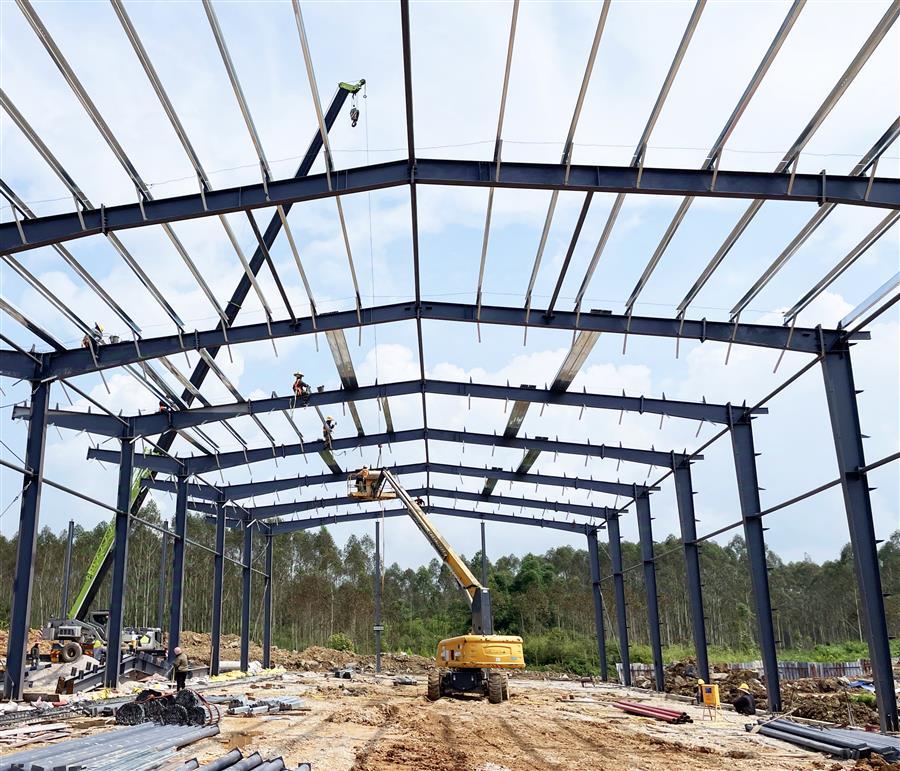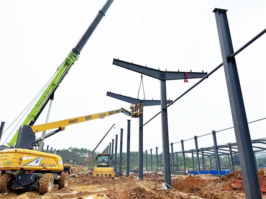 項(xiàng)目開(kāi)工以來(lái),為加快建設(shè)進(jìn)度,項(xiàng)目部嚴(yán)格按照公司相關(guān)要求進(jìn)行施工管理,克服重重困難,制定科學(xué)的施工組織計(jì)劃,由專員監(jiān)督指揮施工。該項(xiàng)目占地面積約2萬(wàn)平方米,總建筑面積1.2萬(wàn)平方米,主要建設(shè)一棟鋼架結(jié)構(gòu)標(biāo)準(zhǔn)廠房,配套建設(shè)道路、圍墻、綠化、電氣、消防及給排水等設(shè)施。目前已完成基礎(chǔ)承臺(tái)及地腳螺栓的預(yù)埋,鋼結(jié)構(gòu)安裝完成40%,配套建設(shè)施工內(nèi)容完成30%。