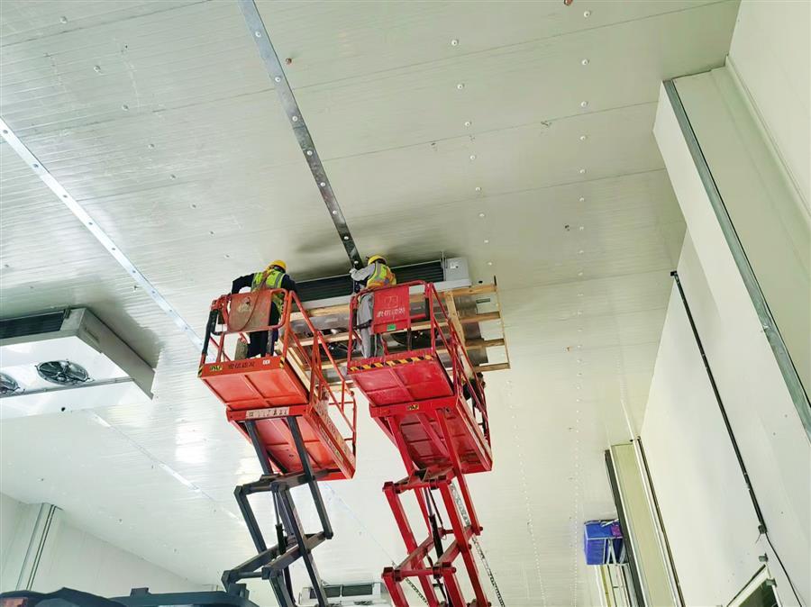 為做好施工現(xiàn)場(chǎng)管理工作,項(xiàng)目部緊扣時(shí)間節(jié)點(diǎn),科學(xué)優(yōu)化施工方案,確保每一項(xiàng)施工點(diǎn)都有人負(fù)責(zé)、有人監(jiān)督,全方位排查施工各環(huán)節(jié)安全情況,嚴(yán)格落實(shí)各項(xiàng)管控措施,根據(jù)施工進(jìn)度及時(shí)總結(jié)和部署作業(yè)事項(xiàng),確保安裝工程安全高效進(jìn)行。目前,項(xiàng)目1#玉米加工車間屋面蒸發(fā)冷設(shè)備安裝完成,管道安裝完成90%;壓縮機(jī)、桶泵機(jī)組設(shè)備完成安裝,管道安裝完成80%、速凍機(jī)組設(shè)備安裝完成80%。3#機(jī)房壓縮機(jī)、桶泵機(jī)組安裝30%。4#冷鏈配送中心室內(nèi)設(shè)備及管道安裝完成90%,管廊風(fēng)機(jī)安裝完成,管道保溫施工完成90%。