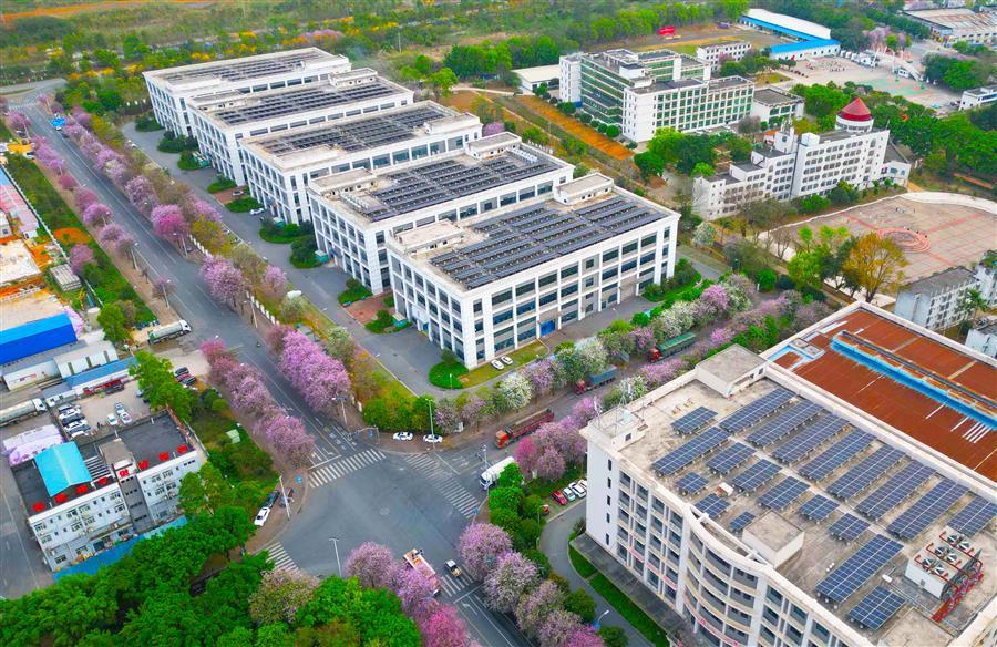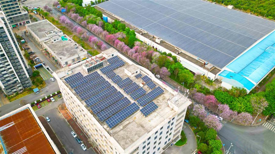 該項目施工內(nèi)容包含光伏基礎(chǔ)施工、支架系統(tǒng)安裝、光伏組件鋪設(shè)、逆變器及并網(wǎng)計量柜等配套電氣設(shè)備安裝、接地防雷系統(tǒng)施工、電纜敷設(shè)與橋架安裝等全部工程。項目總裝機(jī)容量2792.79kWp,采用4774片585Wp單晶硅光伏組件,配置110kW逆變器16臺、50kW逆變器1臺、100kW逆變器8臺,共設(shè)7個并網(wǎng)點(diǎn),采用“自發(fā)自用、余電上網(wǎng)”模式,年發(fā)電量約267.27萬kWh。