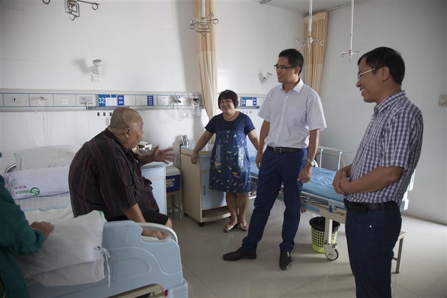 在走訪慰問(wèn)過(guò)程中,慰問(wèn)組首先來(lái)到了柳鋼醫(yī)院住院部探望因腦出血而住院的職工李杰。在病房里,處于術(shù)后恢復(fù)期的李杰同志已經(jīng)能夠端坐在病床上,并與歐總經(jīng)理親切握手、正常交流,歐總經(jīng)理表示非常欣慰,他關(guān)切地詢問(wèn)了李杰同志的身體狀況,得知其恢復(fù)良好,放寬了心,他向李杰同志叮囑道:“一定要注意清淡飲食,身體是革命的本錢,要保重好身體,注意休息,術(shù)后身體便利了一定要多走走,多鍛煉。”廖副總經(jīng)理也表示道:“公司一直關(guān)注著職工的生活情況,我們有時(shí)間一定會(huì)再常來(lái)看你。”