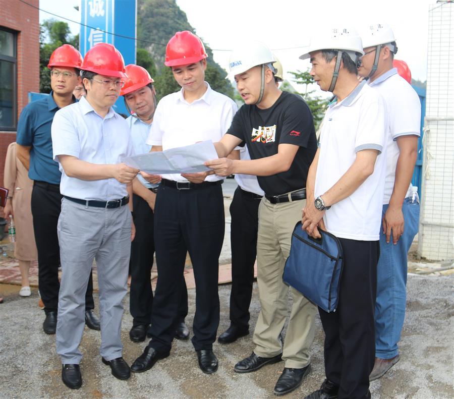 6月24日,河池市委常委、宣傳部部長、副市長陸海生到桂金分公司承建的河池·澳門國際城雙語幼兒園工程調(diào)研。