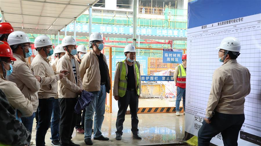會(huì)前,參會(huì)人員一同進(jìn)入磐龍府項(xiàng)目現(xiàn)場(chǎng)進(jìn)行觀摩學(xué)習(xí)。