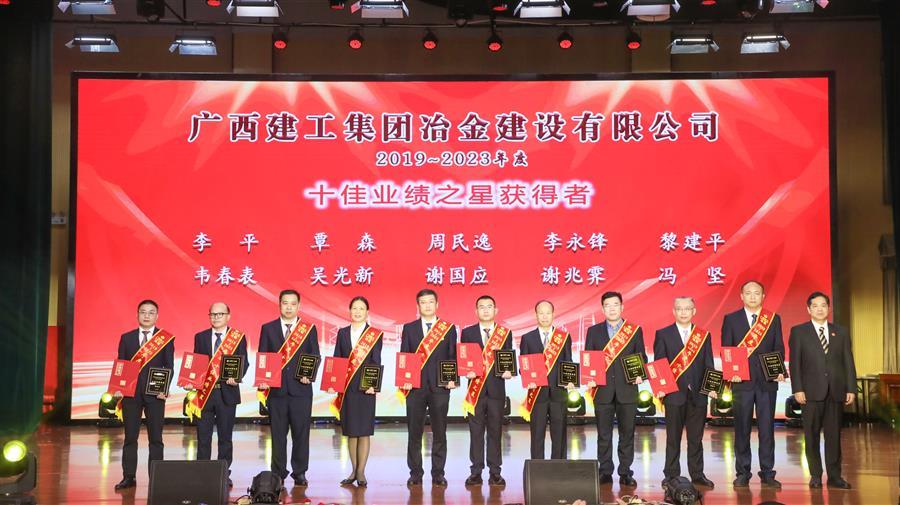 慶典表彰了冶建公司2019~2023年度卓越貢獻(xiàn)獎(jiǎng)、突出貢獻(xiàn)獎(jiǎng)、十佳業(yè)績(jī)之星、優(yōu)秀管理之星、先鋒模范標(biāo)兵獲獎(jiǎng)個(gè)人。