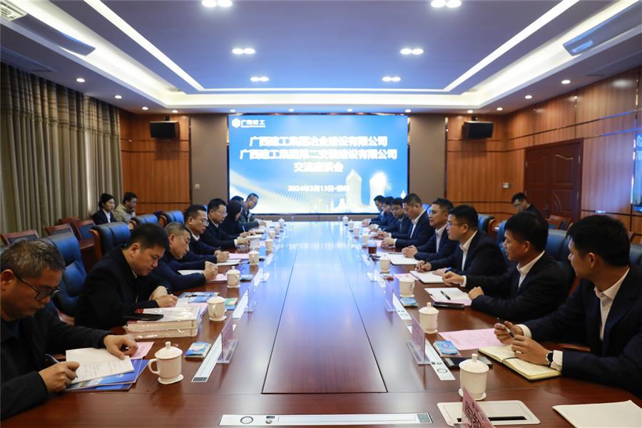 3月13日,冶建公司董事長、黨委書記覃振華帶隊到廣西建工集團第二安裝建設(shè)有限公司開展工作交流。二安公司董事長、黨委書記歐志永,副總經(jīng)理陶興南,冶建公司黨委副書記、紀委書記、工會主席賴海標參加。