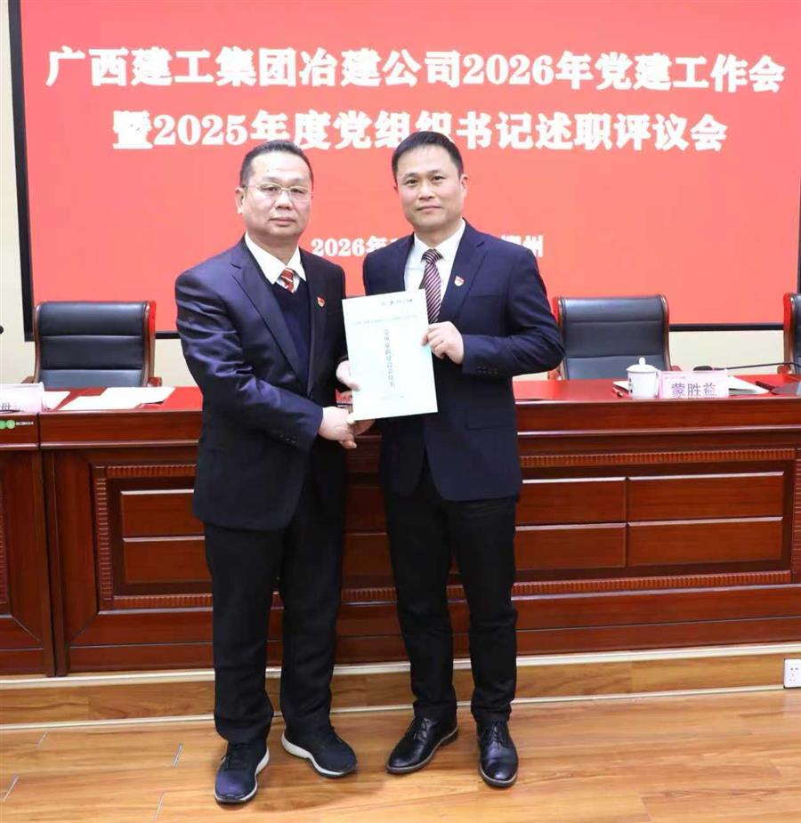 1月23日,冶建公司2026年黨建工作會暨2025年度黨組織書記述職評議會在第二會議室召開。公司黨委書記、董事長覃振華參加并講話,黨委副書記、總經(jīng)理蒙勝益?zhèn)鬟_集團公司2026年黨建工作會暨2025年度黨組織書記述職評議會精神,黨委副書記、紀委書記、工會主席賴海標主持,領(lǐng)導班子成員廖立波、阮仁勝、韋克雪、葉益華參加。