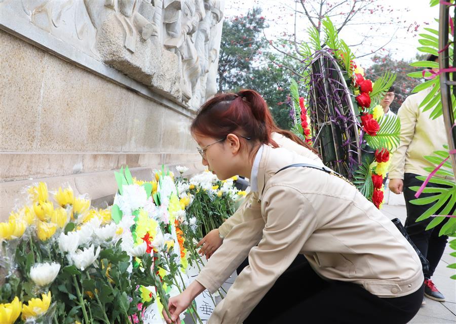 宣誓后,團(tuán)員青年在烈士陵園開展《學(xué)史愛國 青年力行》主題微團(tuán)課,回顧中國共產(chǎn)黨帶領(lǐng)人民群眾浴血奮戰(zhàn)、進(jìn)行艱苦卓絕斗爭的革命歷程,追憶崢嶸歲月,緬懷革命英烈,致敬百年征程。隨后,團(tuán)員青年有序來到烈士紀(jì)念碑基座前,瞻仰紀(jì)念碑,將一朵朵鮮花整齊擺放在紀(jì)念碑基座上,向烈士致以崇高的敬意。