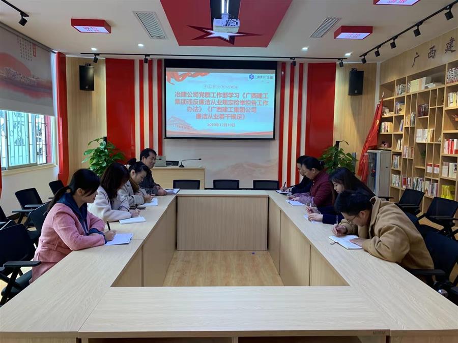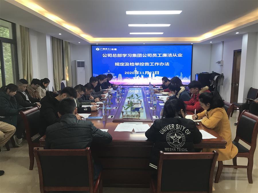 近日,公司總部各部門積極落實(shí)集團(tuán)公司和公司關(guān)于加強(qiáng)員工廉潔從業(yè)的工作部署,陸續(xù)開展對(duì)《廣西建工集團(tuán)有限責(zé)任公司員工廉潔從業(yè)若干規(guī)定》《廣西建工集團(tuán)違反廉潔從業(yè)規(guī)定檢舉控告工作辦法》的專題學(xué)習(xí)。