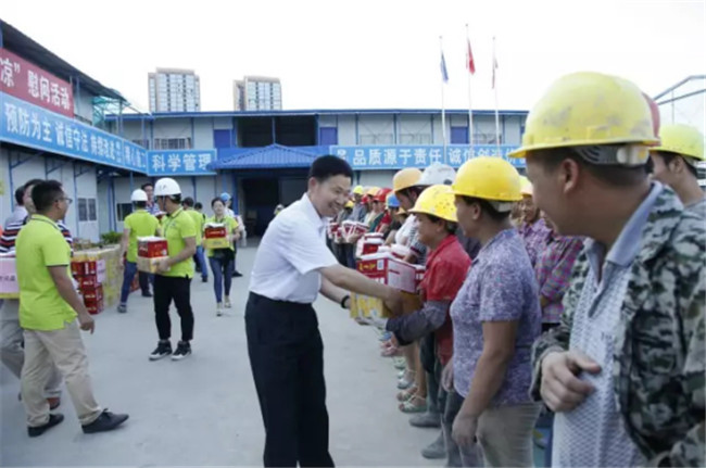 柳州市高新區(qū)科技園專(zhuān)家公寓樓工程由我司桂華分公司承建。8月7日下午,廣西建工集團(tuán)副總經(jīng)理侯立林冒著高溫酷暑,專(zhuān)程從南寧前來(lái)項(xiàng)目建設(shè)現(xiàn)場(chǎng)給一線職工和農(nóng)民工“送清涼”,公司領(lǐng)導(dǎo)歐志永、賴(lài)海標(biāo)、廖立波參加活動(dòng)。130多份價(jià)值9000多元的慰問(wèn)品,在十多分鐘的時(shí)間里,全部發(fā)放完畢。